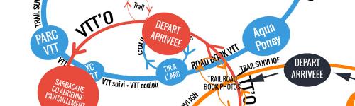 - Le raid Long : une épreuve de 5h de «difficulté facile». Elle comporte une course d’orientation, du tir à l’arc, du run and bike, du VTT et du trail. 60 balises à collecter en moins de 4 heures ;)